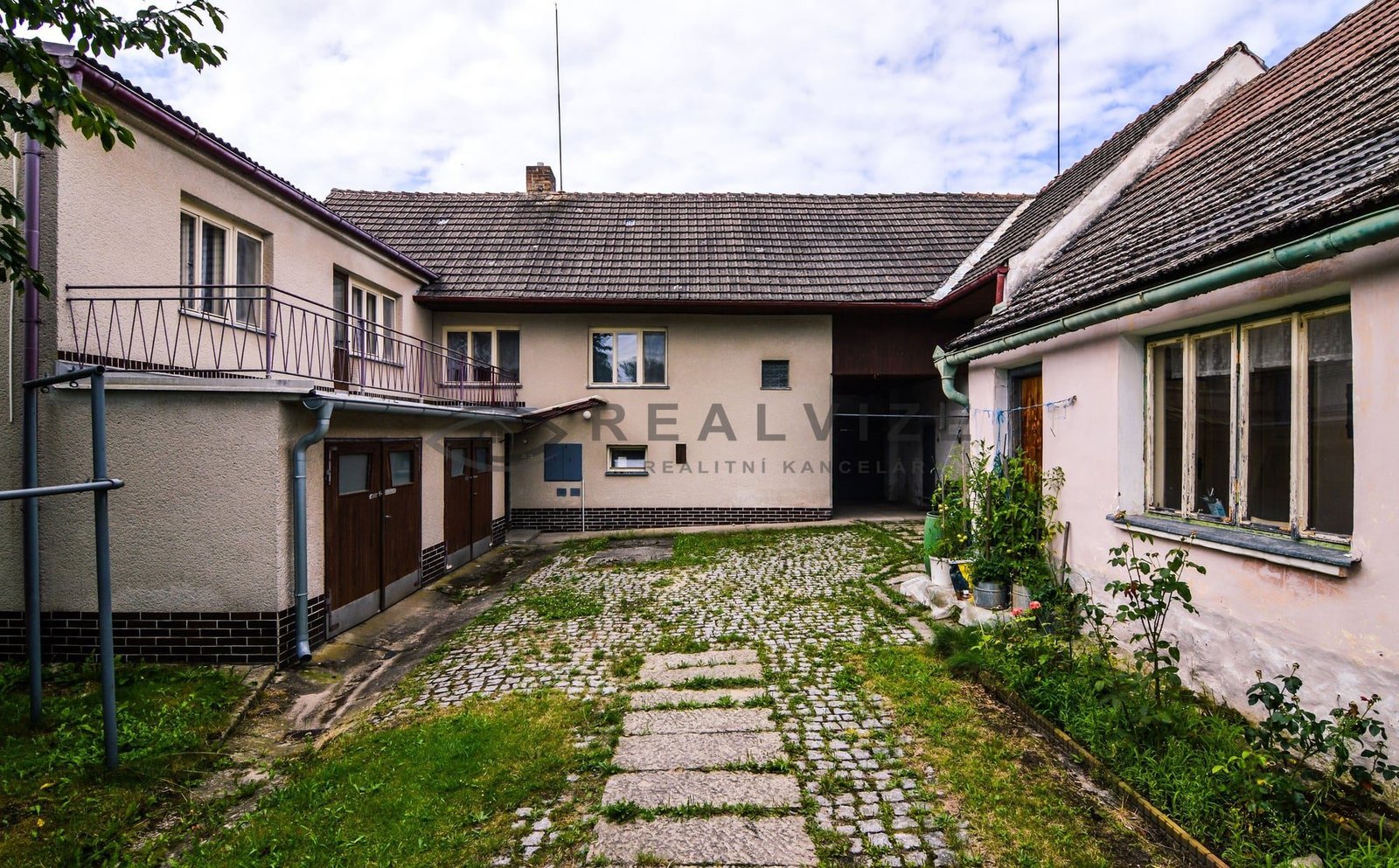 Objekt je ve tvaru L s vnitřním dlážděným dvorem a skládá se ze dvou samostatných domů o dispozici 3+1, spojených společnou půdou.